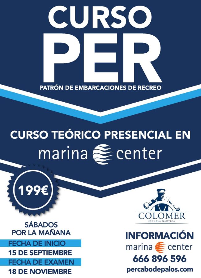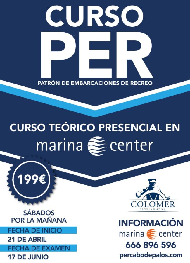Tras el éxito del primer curso del año organizado por Marina Center, en el que todos los alumnos han aprobado, convocamos el 2º curso para obtener el PER (Patrón de Embarcaciones de Recreo). Reserva ya tu plaza ¡¡¡ Este curso tiene como objetivo que los alumnos participantes se presenten al examen del día 17 de…